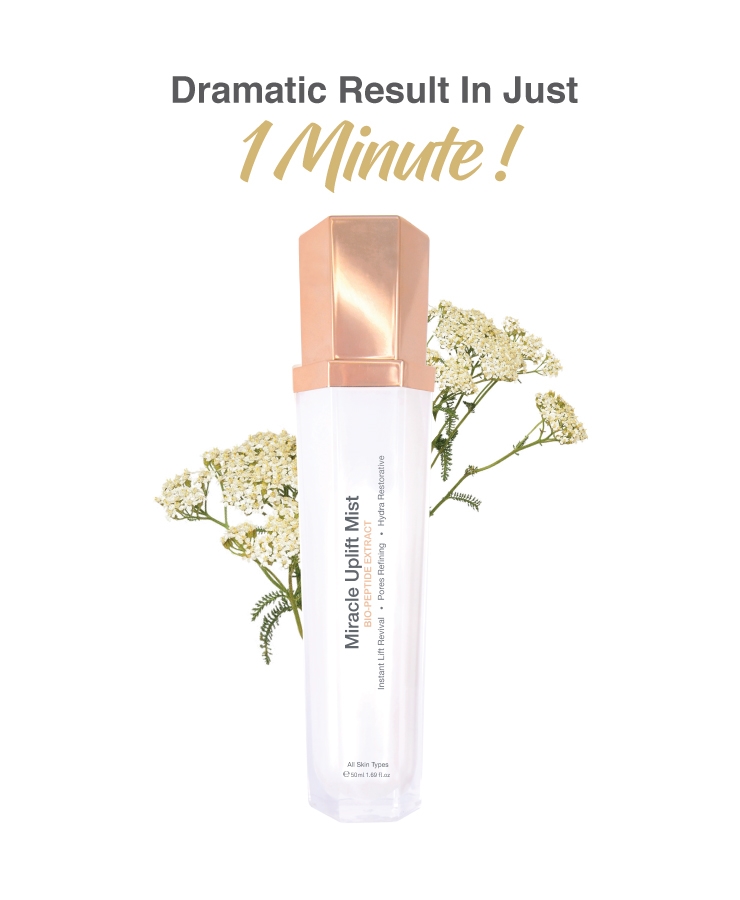 Reborn every day! The powerful skin rejuvenator provides an entire face lift in just one minute, thanks to the State-Of-The-Art formula of bio-peptide and other active plants extract which maximize the enhanced rejuvenating of the skin intensively. The Miracle Uplift Mist features age-defying with potent antioxidant-rich and highly active moisturizing properties help to increase skin vitality, restore skin moisture from within, diminishes fine lines and wrinkles while decelerating pre-maturing skin distinctively. It provides deep effect to reveal for a more defined skin texture, firmer with visible V shaped face contour and most of all for a more youthful appearance!